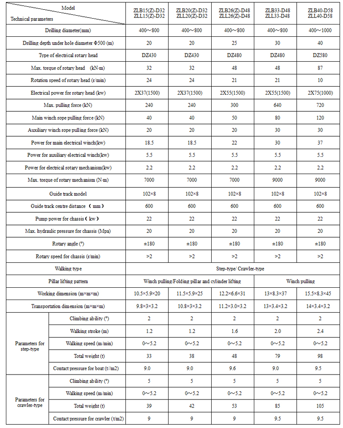 Main Technical parameters of ZL-D series electrical rotary head long screw drilling machine
