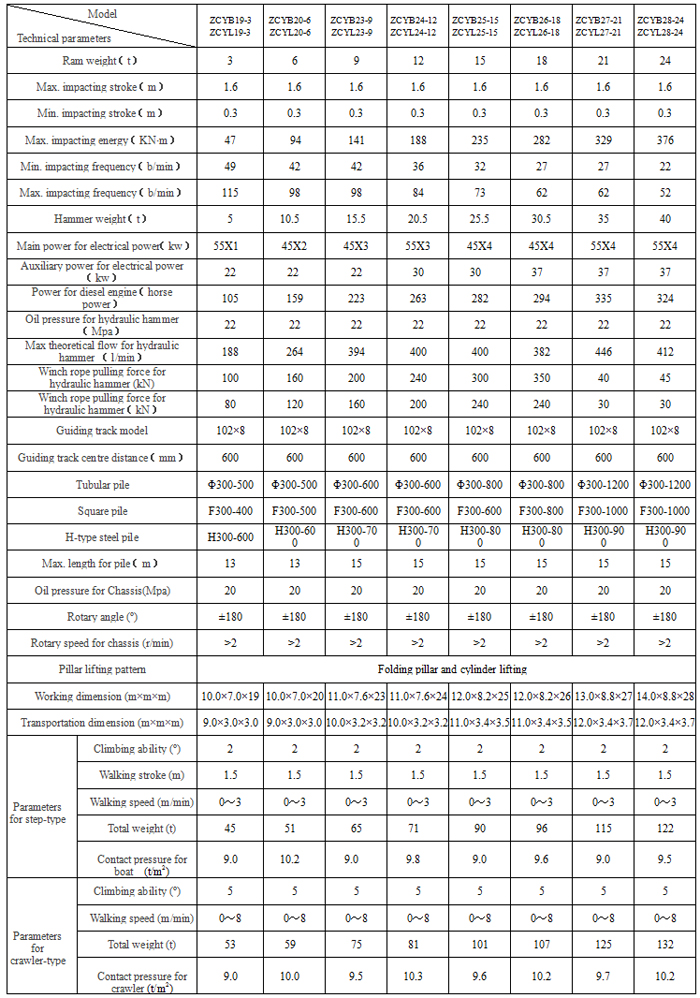 ZCY series hydraulic pile hammer with frequency and energy stepless adjuster, is a new product manufactured by Changhe according to its patented technology, which is used for the precast pile construction of building foundation, bridge foundation,airport foundation,roadbed of railroads and trackless roads. The precast pile diameter ranges 0.6m to 1.5m.